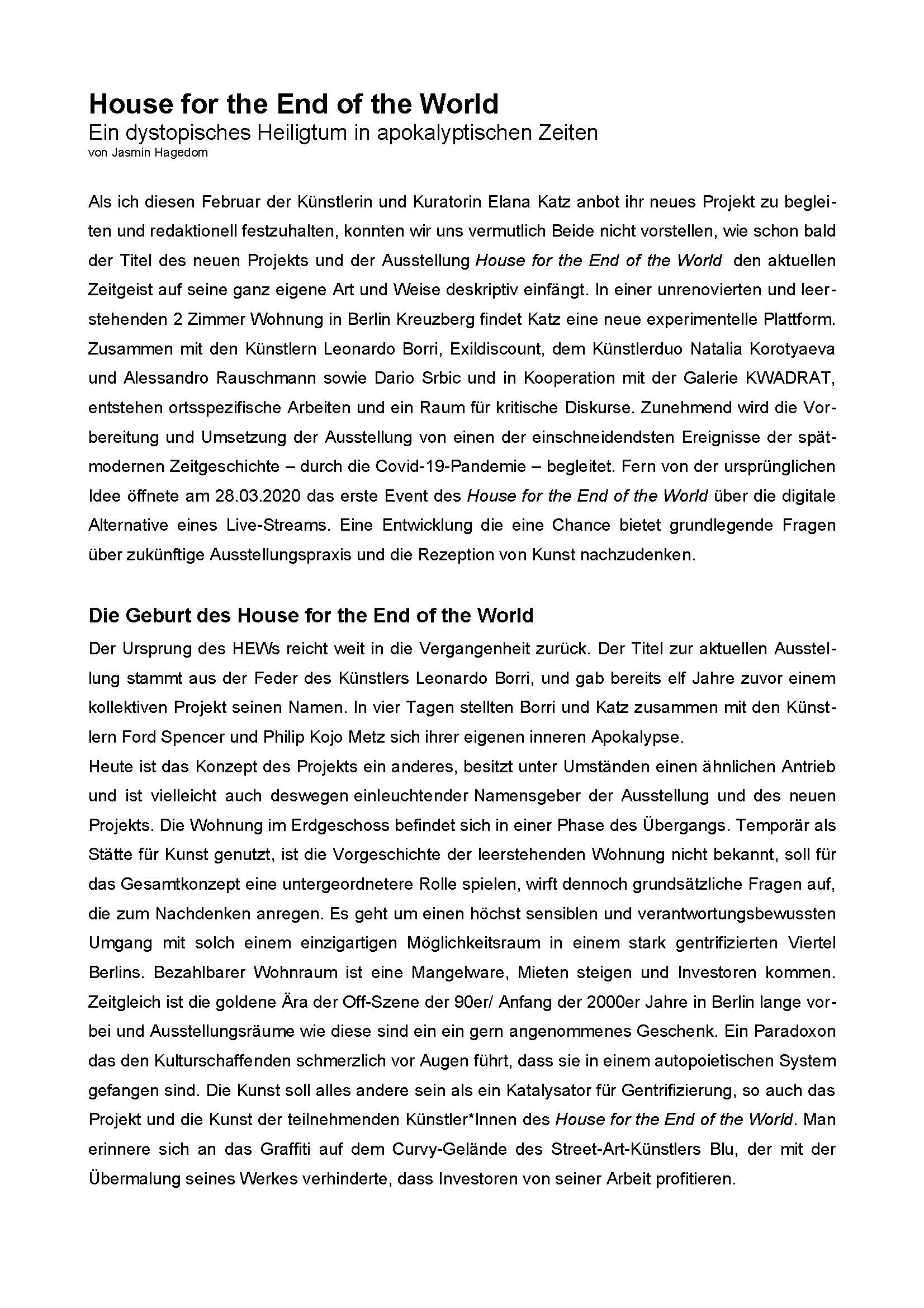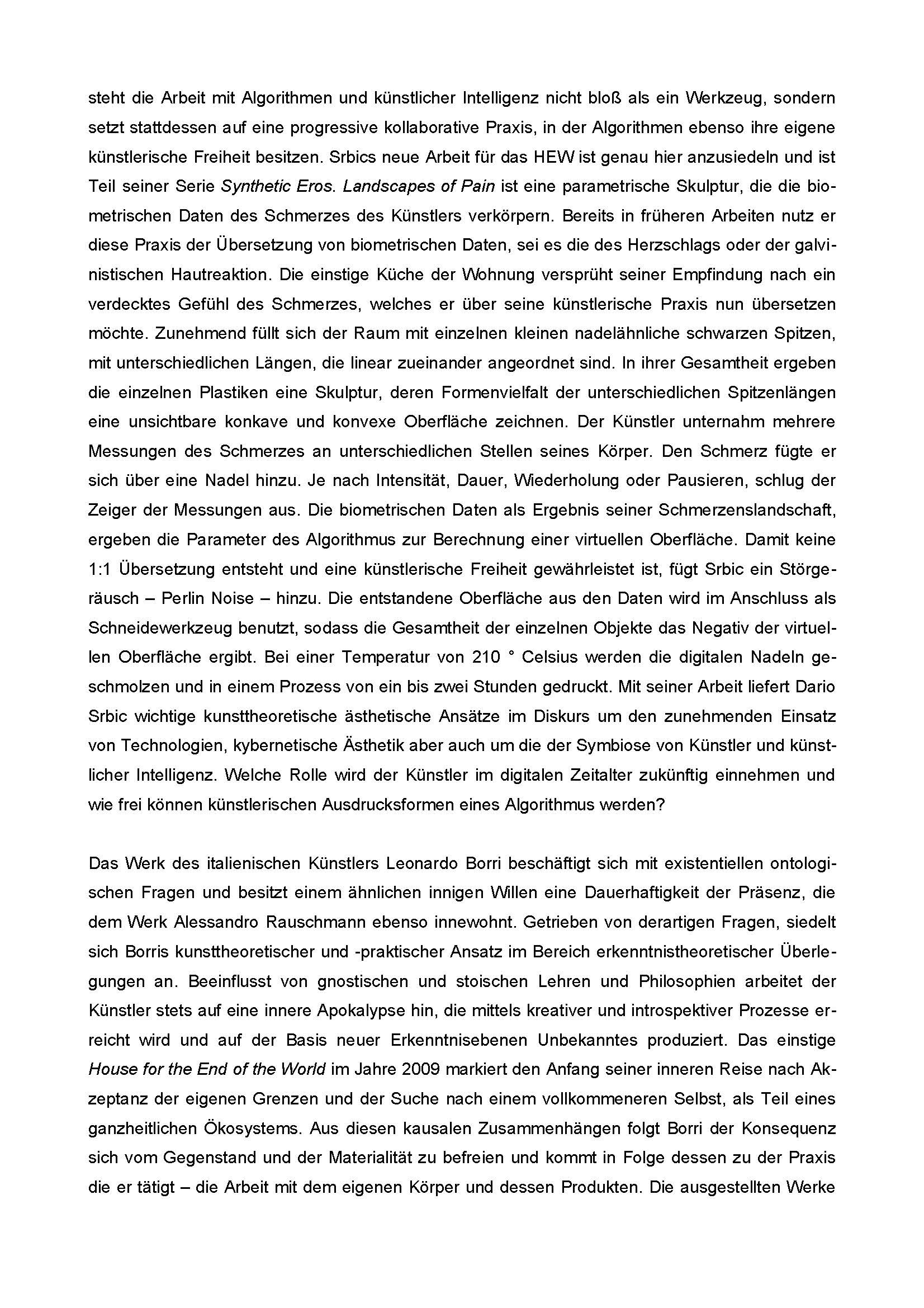 The curatorial reflection on the group exhbition at the House for the End of the World in Berlin (unfortunately only available in German), meditates on the impact of the sculpture, when 3D-printed, blocking the viewers to enter the space: